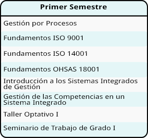 El Especialista en Sistemas Integrados de Gestión (HSEQ) egresado de la Universidad de Investigación y Desarrollo –UDI- estará en capacidad de participar en forma individual o colectiva en la planificación, documentación, implementación, mantenimiento y mejora de un sistema integral de gestión en el marco de las normas NTC ISO 9001 Sistema de Gestión de Calidad, OHSAS 18001 Sistema en Seguridad y Salud Ocupacional e ISO 14001 Sistema de Gestión Ambiental, todo ello dentro de un marco ético y de responsabilidad profesional.